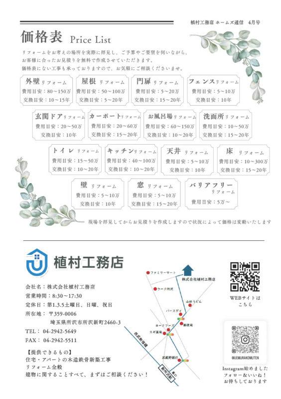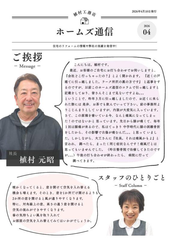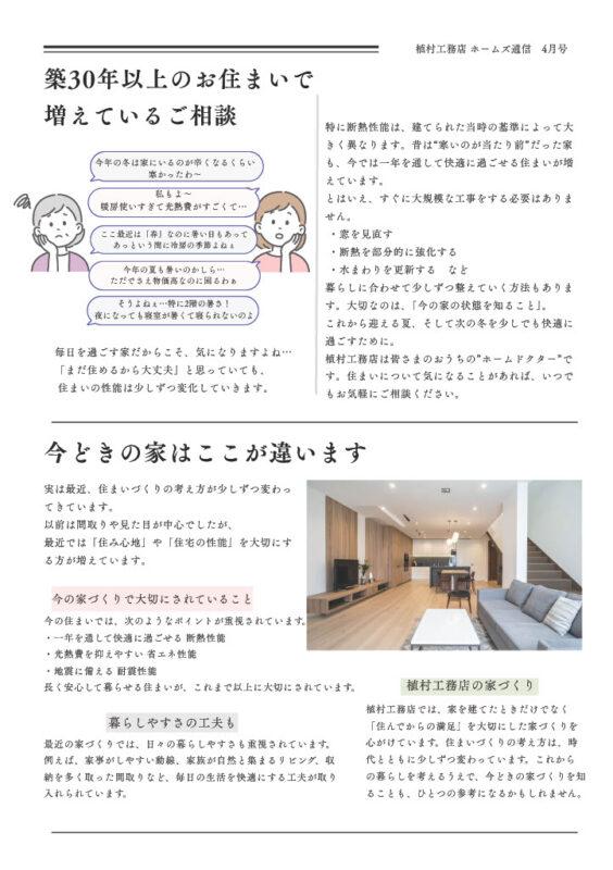 植村工務店では、定期的にお住まいに関する情報をお届けする「ホームズ通信」を発行しています。